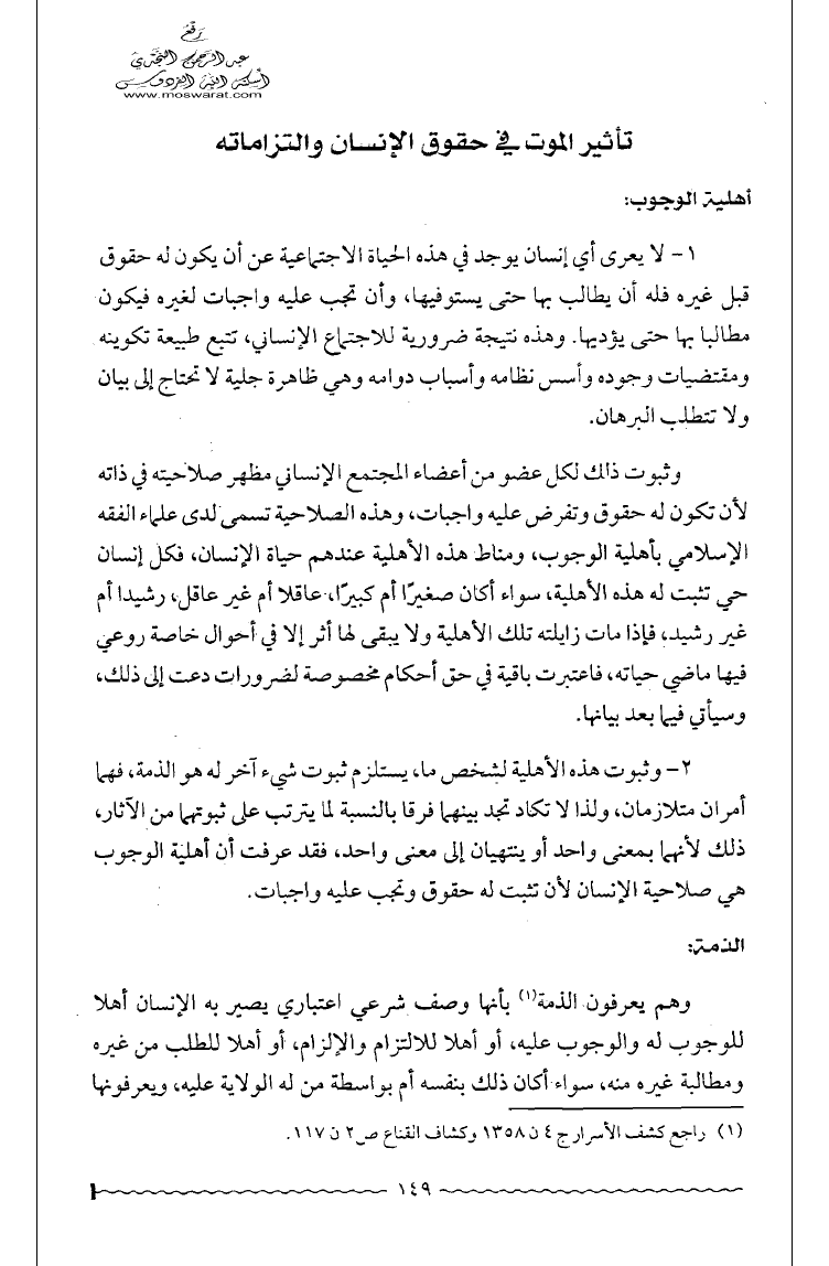 الحق والذمة وتأثير الموت فيهما وبحوث أخرى