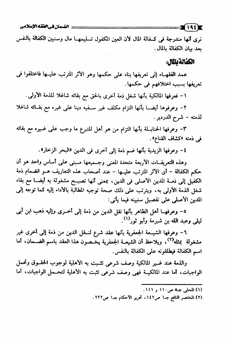 الضمان في الفقه الإسلامي (والكفالة والديات والأروش والقسامة)