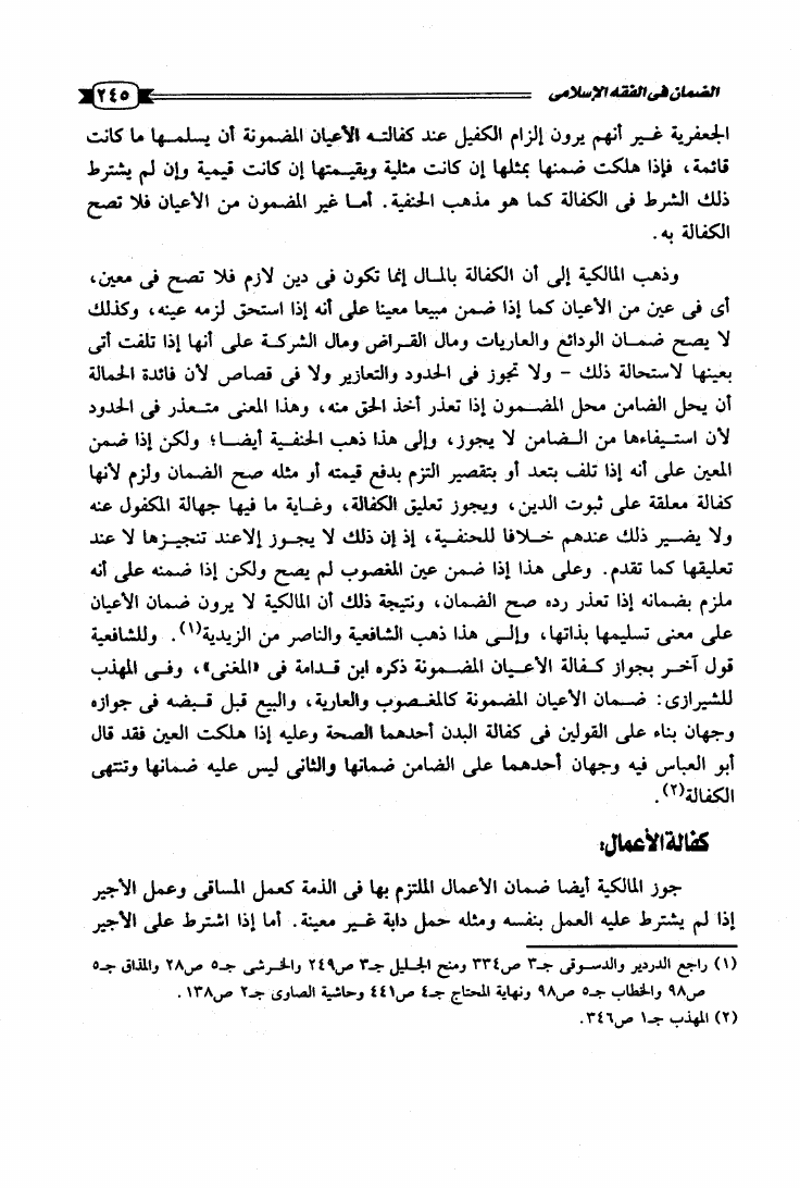 الضمان في الفقه الإسلامي (والكفالة والديات والأروش والقسامة)