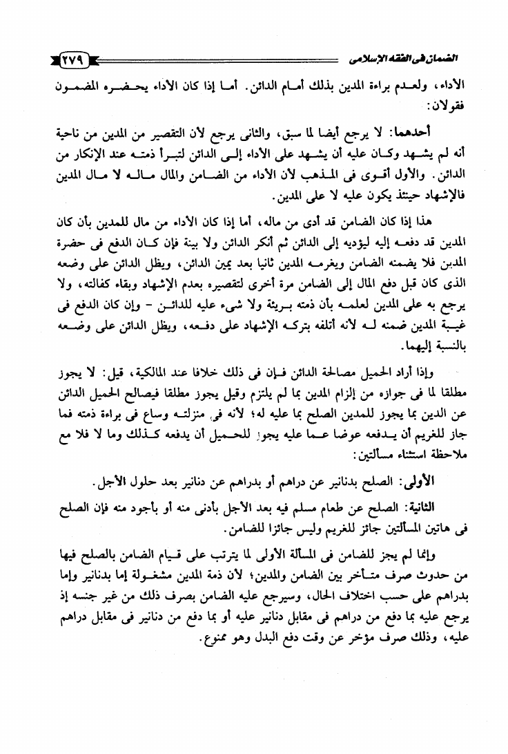 الضمان في الفقه الإسلامي (والكفالة والديات والأروش والقسامة)