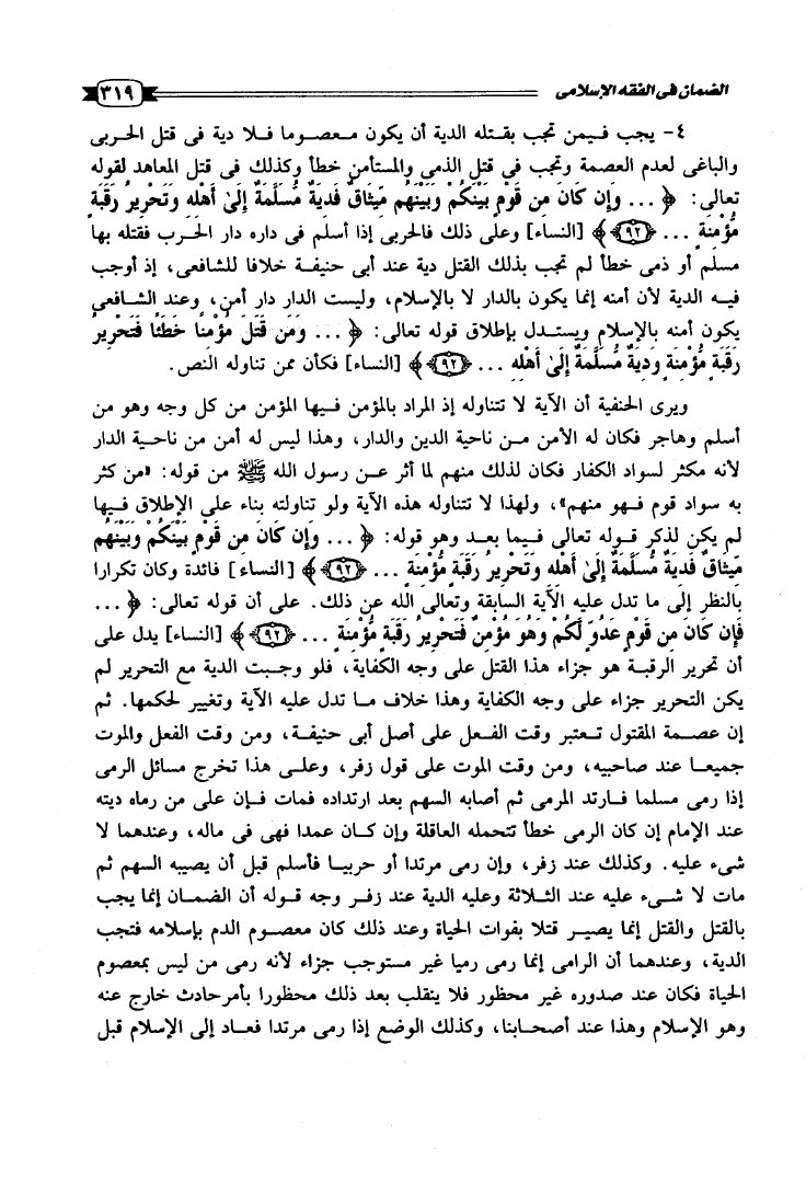 الضمان في الفقه الإسلامي (والكفالة والديات والأروش والقسامة)