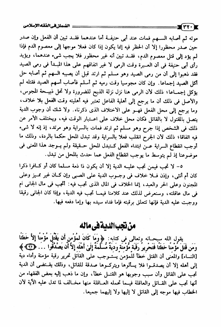 الضمان في الفقه الإسلامي (والكفالة والديات والأروش والقسامة)