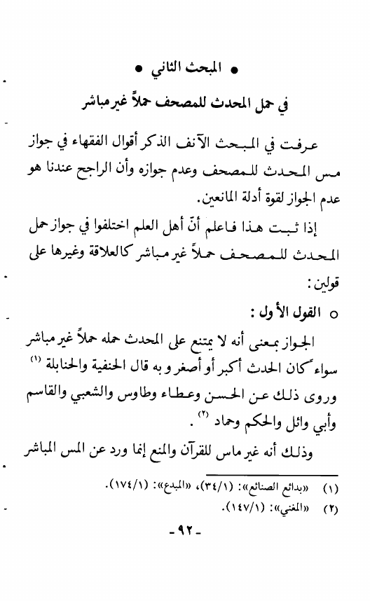 الطهارة لقراءة القرآن والطواف بالبيت الحرام
