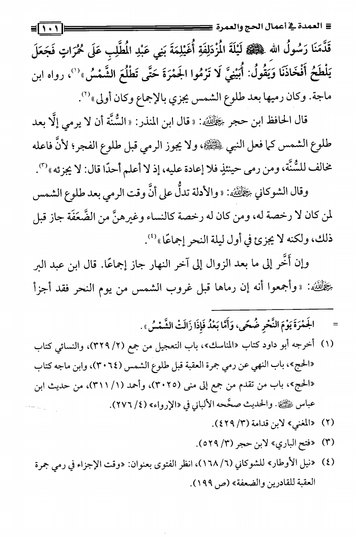 نام کتاب : العمدة فى أعمال الحج والعمرة ومعه نصيحة بين يدي الحاج والمعتمر، فتاوى في الحج والعمرة نویسنده : محمد علي فركوس أبو عبد المعز جلد : 1 صفحه : 101