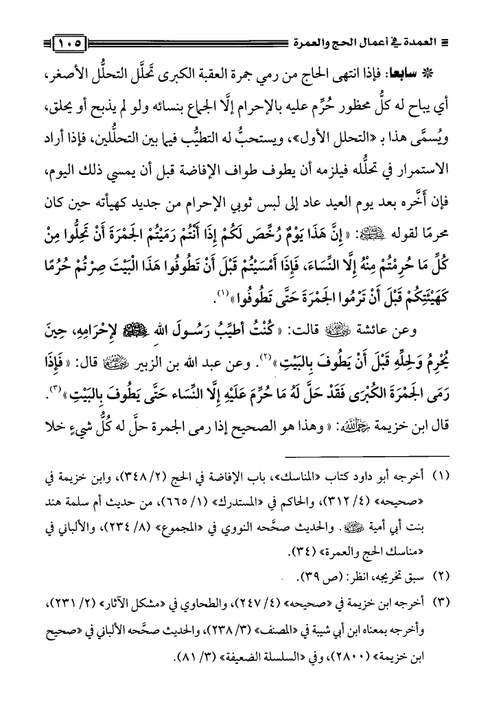 نام کتاب : العمدة فى أعمال الحج والعمرة ومعه نصيحة بين يدي الحاج والمعتمر، فتاوى في الحج والعمرة نویسنده : محمد علي فركوس أبو عبد المعز جلد : 1 صفحه : 105