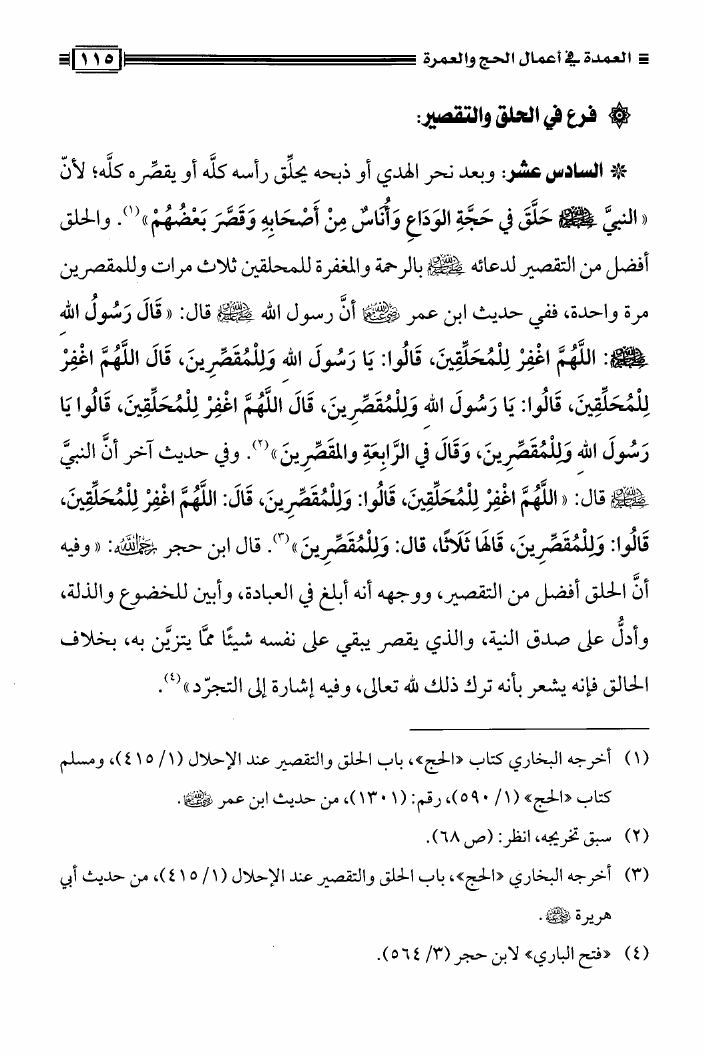 نام کتاب : العمدة فى أعمال الحج والعمرة ومعه نصيحة بين يدي الحاج والمعتمر، فتاوى في الحج والعمرة نویسنده : محمد علي فركوس أبو عبد المعز جلد : 1 صفحه : 115