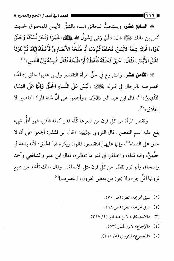 نام کتاب : العمدة فى أعمال الحج والعمرة ومعه نصيحة بين يدي الحاج والمعتمر، فتاوى في الحج والعمرة نویسنده : محمد علي فركوس أبو عبد المعز جلد : 1 صفحه : 116