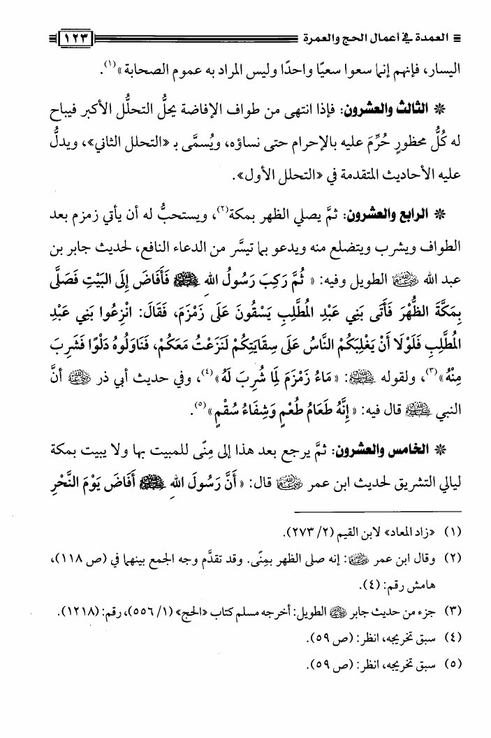 نام کتاب : العمدة فى أعمال الحج والعمرة ومعه نصيحة بين يدي الحاج والمعتمر، فتاوى في الحج والعمرة نویسنده : محمد علي فركوس أبو عبد المعز جلد : 1 صفحه : 123