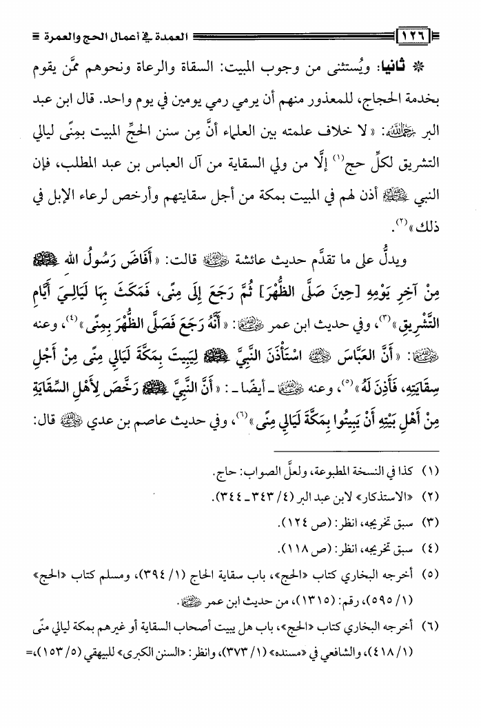 نام کتاب : العمدة فى أعمال الحج والعمرة ومعه نصيحة بين يدي الحاج والمعتمر، فتاوى في الحج والعمرة نویسنده : محمد علي فركوس أبو عبد المعز جلد : 1 صفحه : 126