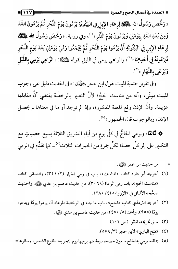 نام کتاب : العمدة فى أعمال الحج والعمرة ومعه نصيحة بين يدي الحاج والمعتمر، فتاوى في الحج والعمرة نویسنده : محمد علي فركوس أبو عبد المعز جلد : 1 صفحه : 127