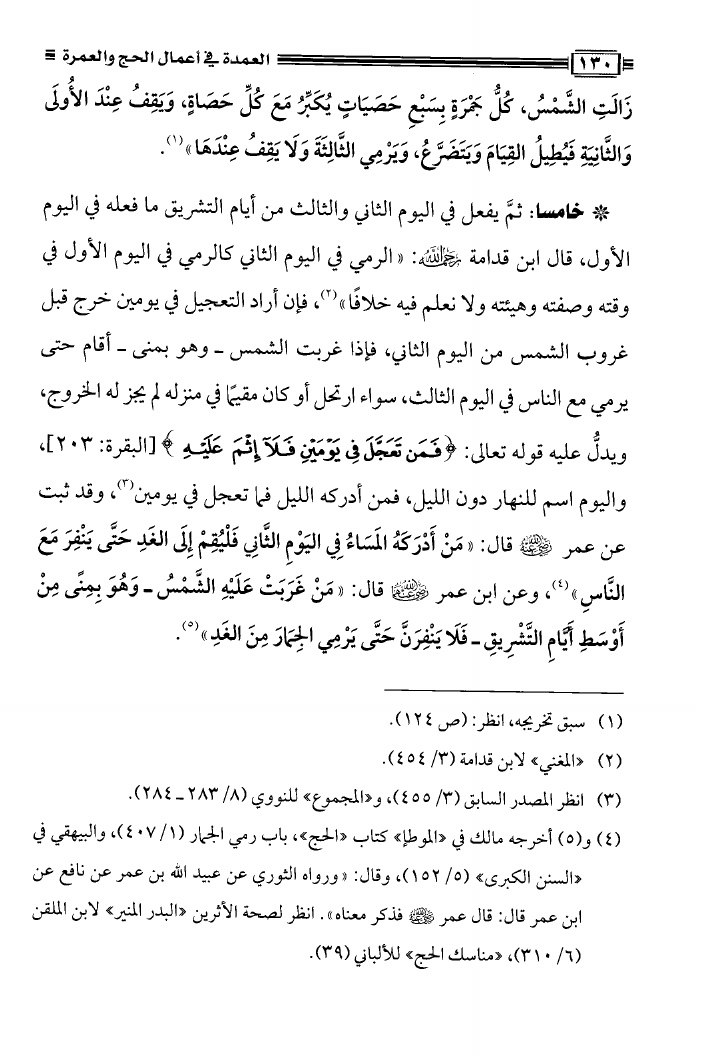 نام کتاب : العمدة فى أعمال الحج والعمرة ومعه نصيحة بين يدي الحاج والمعتمر، فتاوى في الحج والعمرة نویسنده : محمد علي فركوس أبو عبد المعز جلد : 1 صفحه : 130