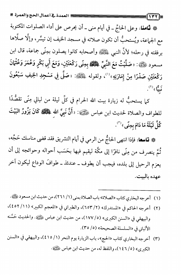 نام کتاب : العمدة فى أعمال الحج والعمرة ومعه نصيحة بين يدي الحاج والمعتمر، فتاوى في الحج والعمرة نویسنده : محمد علي فركوس أبو عبد المعز جلد : 1 صفحه : 132