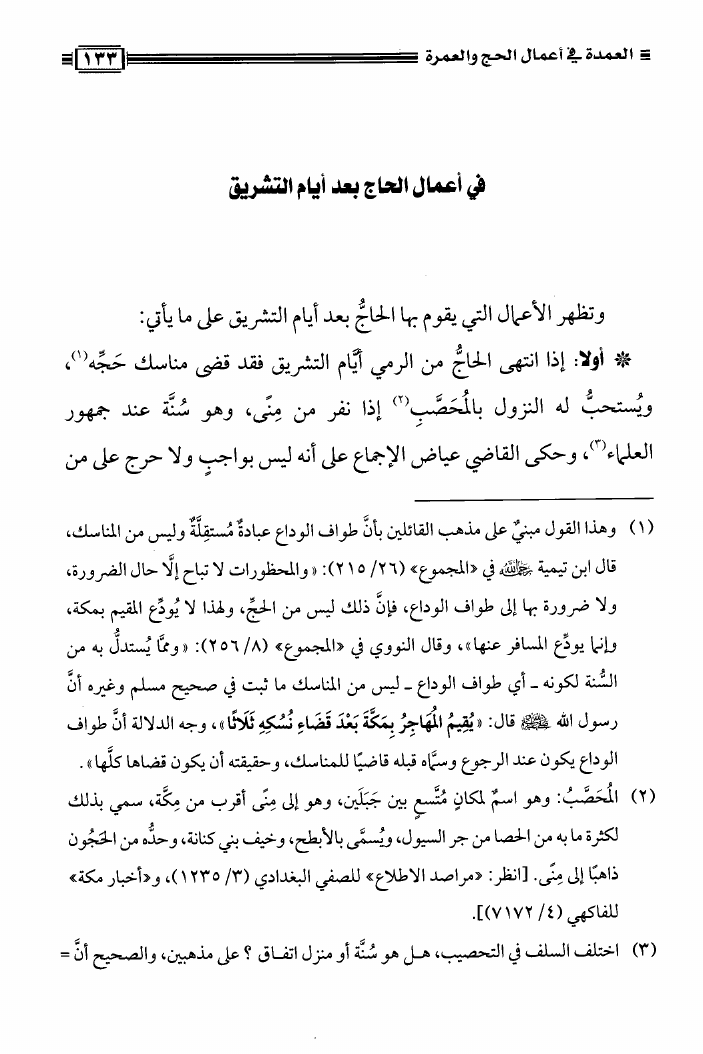 نام کتاب : العمدة فى أعمال الحج والعمرة ومعه نصيحة بين يدي الحاج والمعتمر، فتاوى في الحج والعمرة نویسنده : محمد علي فركوس أبو عبد المعز جلد : 1 صفحه : 133