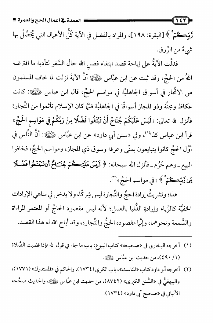 نام کتاب : العمدة فى أعمال الحج والعمرة ومعه نصيحة بين يدي الحاج والمعتمر، فتاوى في الحج والعمرة نویسنده : محمد علي فركوس أبو عبد المعز جلد : 1 صفحه : 142
