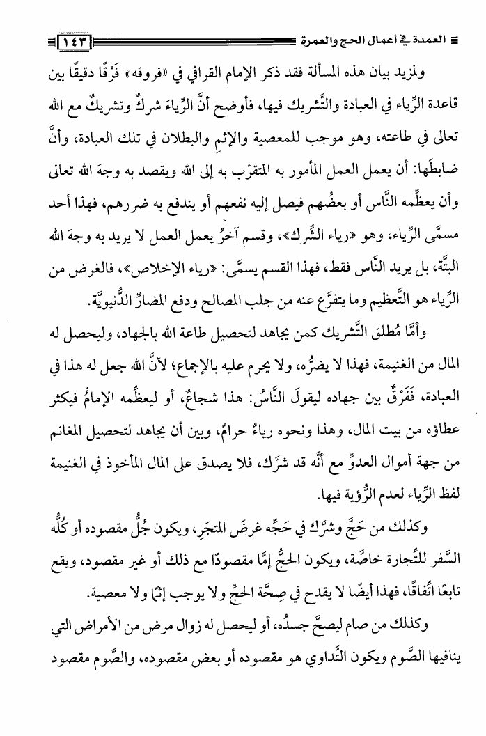 نام کتاب : العمدة فى أعمال الحج والعمرة ومعه نصيحة بين يدي الحاج والمعتمر، فتاوى في الحج والعمرة نویسنده : محمد علي فركوس أبو عبد المعز جلد : 1 صفحه : 143