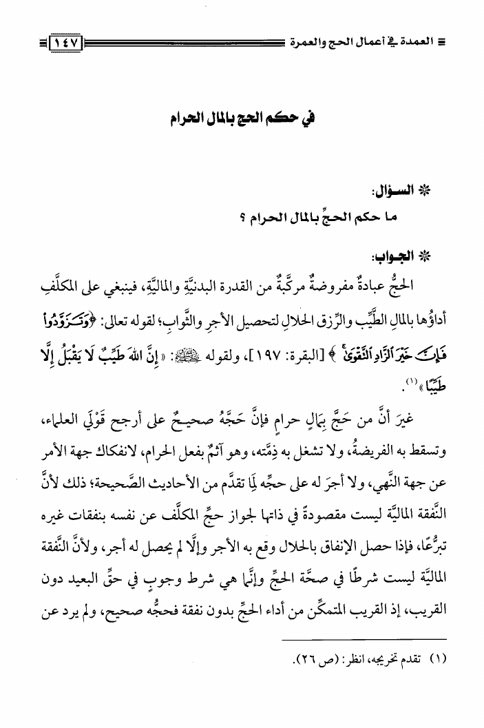 نام کتاب : العمدة فى أعمال الحج والعمرة ومعه نصيحة بين يدي الحاج والمعتمر، فتاوى في الحج والعمرة نویسنده : محمد علي فركوس أبو عبد المعز جلد : 1 صفحه : 147