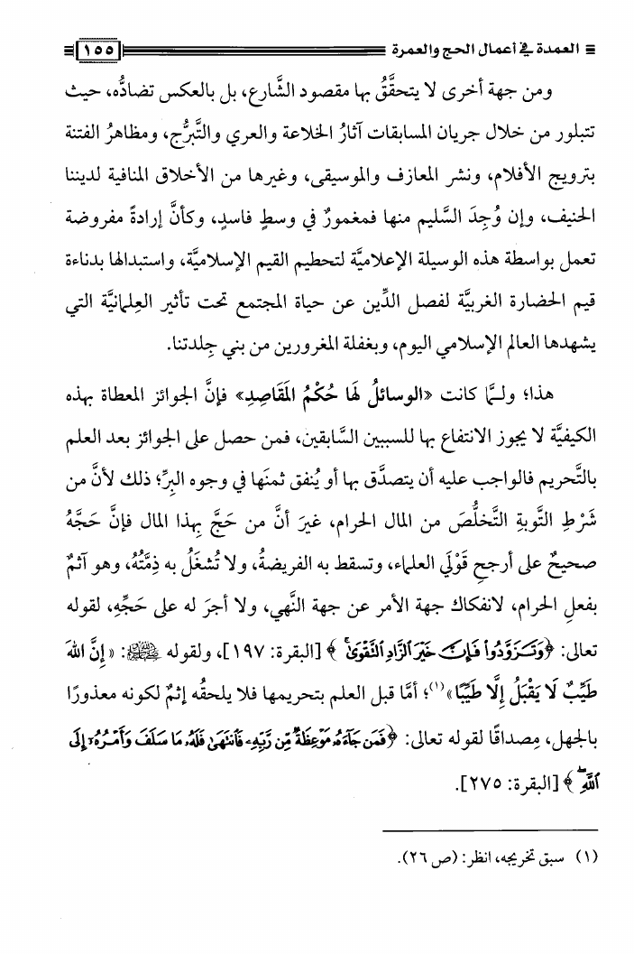 نام کتاب : العمدة فى أعمال الحج والعمرة ومعه نصيحة بين يدي الحاج والمعتمر، فتاوى في الحج والعمرة نویسنده : محمد علي فركوس أبو عبد المعز جلد : 1 صفحه : 155