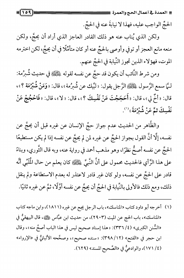 نام کتاب : العمدة فى أعمال الحج والعمرة ومعه نصيحة بين يدي الحاج والمعتمر، فتاوى في الحج والعمرة نویسنده : محمد علي فركوس أبو عبد المعز جلد : 1 صفحه : 159