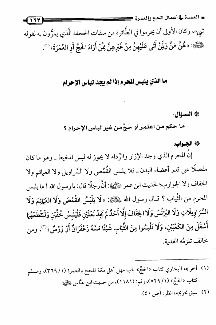 نام کتاب : العمدة فى أعمال الحج والعمرة ومعه نصيحة بين يدي الحاج والمعتمر، فتاوى في الحج والعمرة نویسنده : محمد علي فركوس أبو عبد المعز جلد : 1 صفحه : 163