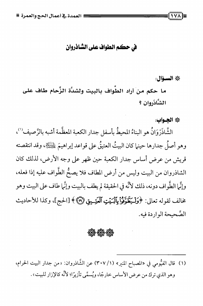 نام کتاب : العمدة فى أعمال الحج والعمرة ومعه نصيحة بين يدي الحاج والمعتمر، فتاوى في الحج والعمرة نویسنده : محمد علي فركوس أبو عبد المعز جلد : 1 صفحه : 178