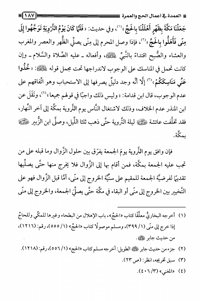 نام کتاب : العمدة فى أعمال الحج والعمرة ومعه نصيحة بين يدي الحاج والمعتمر، فتاوى في الحج والعمرة نویسنده : محمد علي فركوس أبو عبد المعز جلد : 1 صفحه : 187