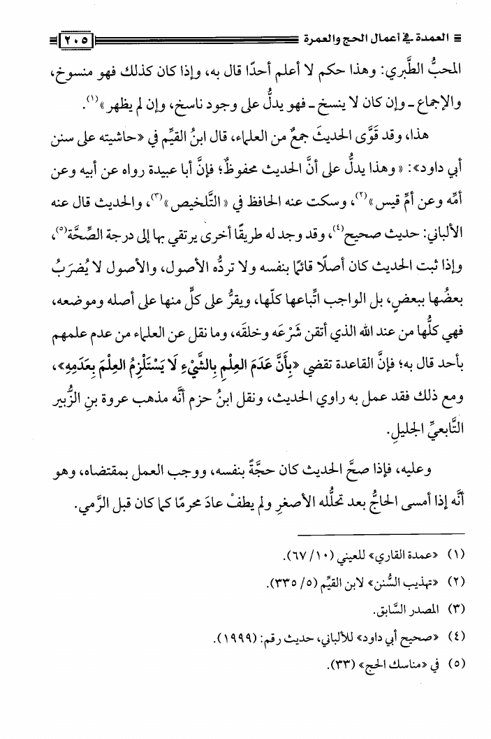 نام کتاب : العمدة فى أعمال الحج والعمرة ومعه نصيحة بين يدي الحاج والمعتمر، فتاوى في الحج والعمرة نویسنده : محمد علي فركوس أبو عبد المعز جلد : 1 صفحه : 205
