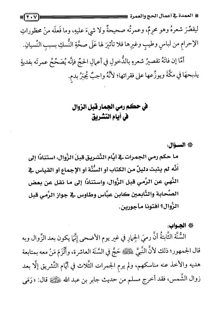 نام کتاب : العمدة فى أعمال الحج والعمرة ومعه نصيحة بين يدي الحاج والمعتمر، فتاوى في الحج والعمرة نویسنده : محمد علي فركوس أبو عبد المعز جلد : 1 صفحه : 207