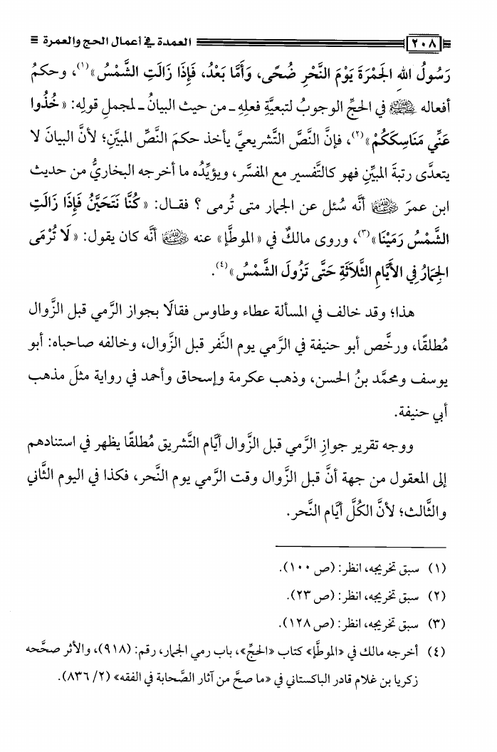 نام کتاب : العمدة فى أعمال الحج والعمرة ومعه نصيحة بين يدي الحاج والمعتمر، فتاوى في الحج والعمرة نویسنده : محمد علي فركوس أبو عبد المعز جلد : 1 صفحه : 208