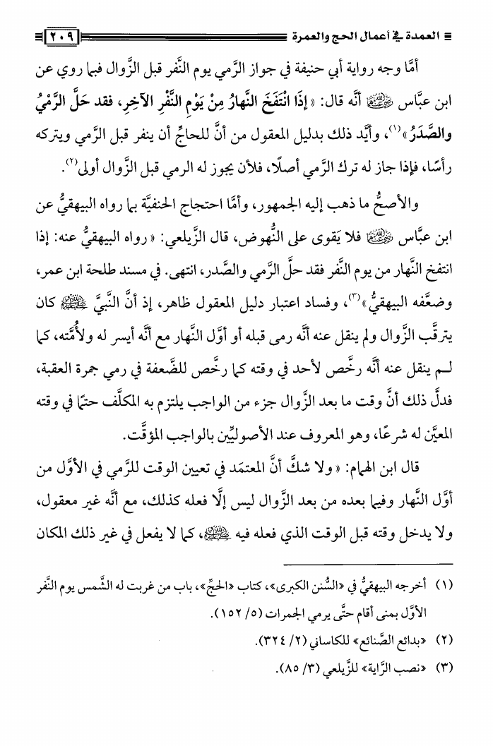 نام کتاب : العمدة فى أعمال الحج والعمرة ومعه نصيحة بين يدي الحاج والمعتمر، فتاوى في الحج والعمرة نویسنده : محمد علي فركوس أبو عبد المعز جلد : 1 صفحه : 209