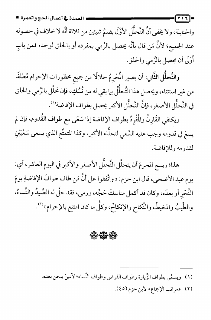 نام کتاب : العمدة فى أعمال الحج والعمرة ومعه نصيحة بين يدي الحاج والمعتمر، فتاوى في الحج والعمرة نویسنده : محمد علي فركوس أبو عبد المعز جلد : 1 صفحه : 216