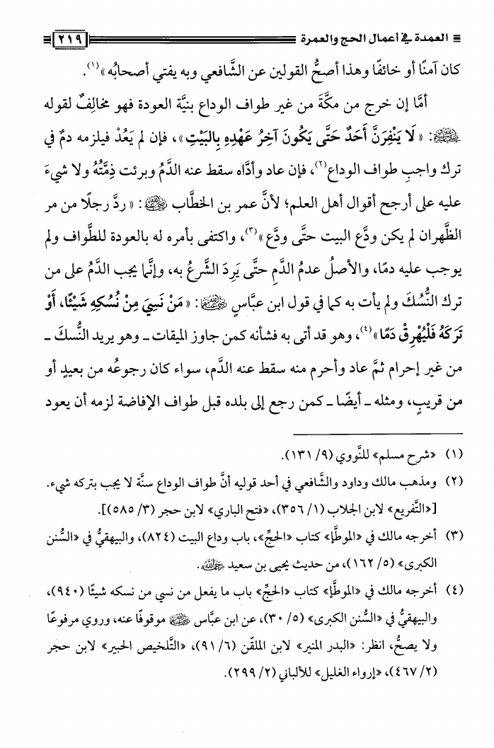 نام کتاب : العمدة فى أعمال الحج والعمرة ومعه نصيحة بين يدي الحاج والمعتمر، فتاوى في الحج والعمرة نویسنده : محمد علي فركوس أبو عبد المعز جلد : 1 صفحه : 219
