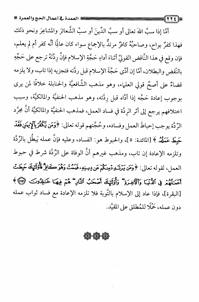 نام کتاب : العمدة فى أعمال الحج والعمرة ومعه نصيحة بين يدي الحاج والمعتمر، فتاوى في الحج والعمرة نویسنده : محمد علي فركوس أبو عبد المعز جلد : 1 صفحه : 224