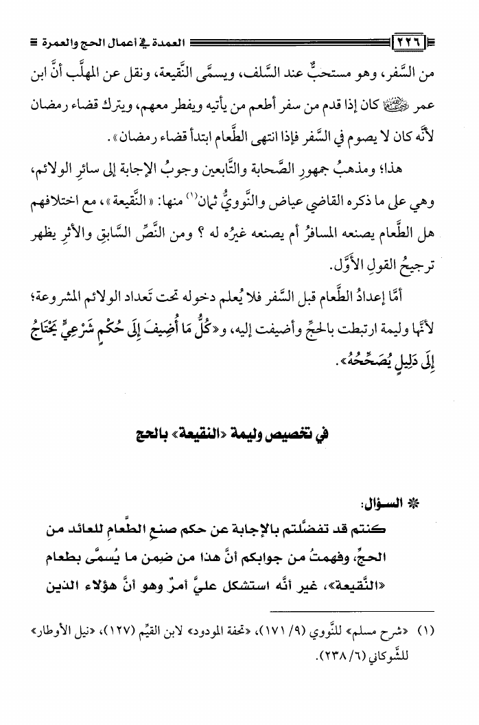 نام کتاب : العمدة فى أعمال الحج والعمرة ومعه نصيحة بين يدي الحاج والمعتمر، فتاوى في الحج والعمرة نویسنده : محمد علي فركوس أبو عبد المعز جلد : 1 صفحه : 226