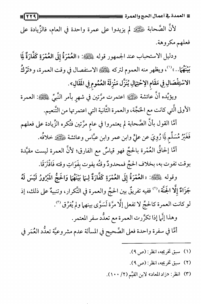 نام کتاب : العمدة فى أعمال الحج والعمرة ومعه نصيحة بين يدي الحاج والمعتمر، فتاوى في الحج والعمرة نویسنده : محمد علي فركوس أبو عبد المعز جلد : 1 صفحه : 229