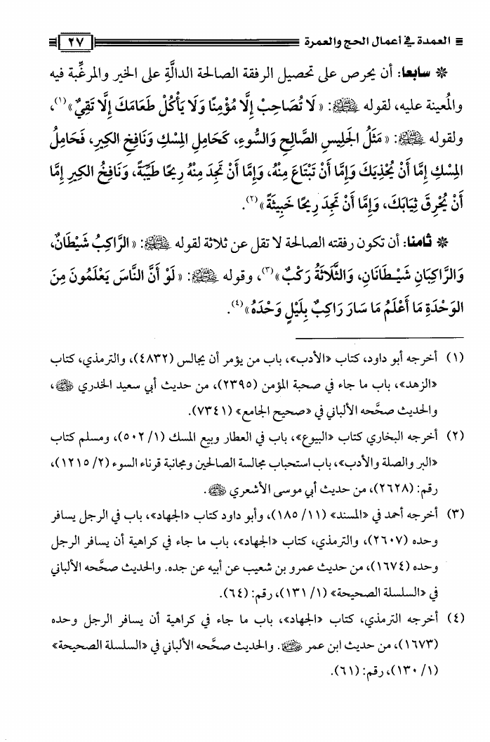 نام کتاب : العمدة فى أعمال الحج والعمرة ومعه نصيحة بين يدي الحاج والمعتمر، فتاوى في الحج والعمرة نویسنده : محمد علي فركوس أبو عبد المعز جلد : 1 صفحه : 27