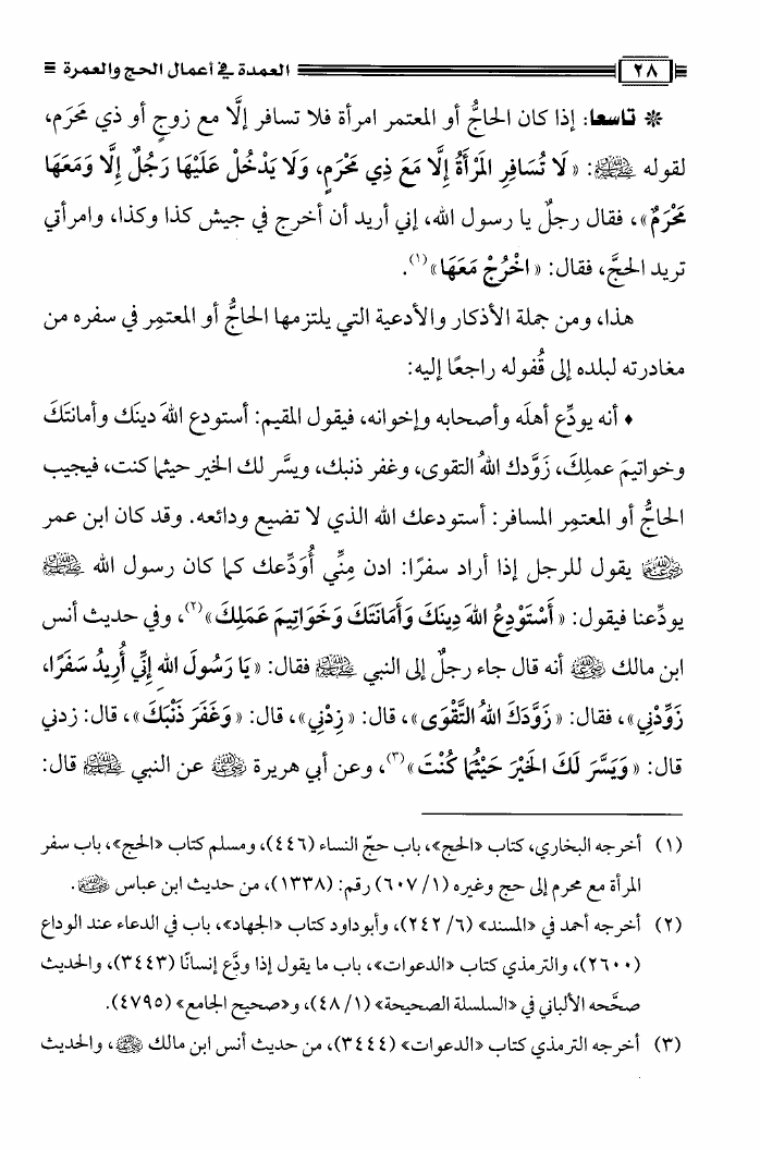 نام کتاب : العمدة فى أعمال الحج والعمرة ومعه نصيحة بين يدي الحاج والمعتمر، فتاوى في الحج والعمرة نویسنده : محمد علي فركوس أبو عبد المعز جلد : 1 صفحه : 28