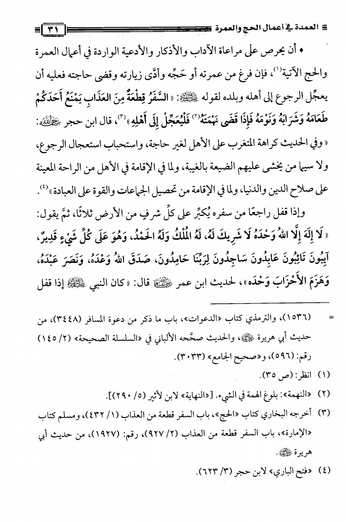 نام کتاب : العمدة فى أعمال الحج والعمرة ومعه نصيحة بين يدي الحاج والمعتمر، فتاوى في الحج والعمرة نویسنده : محمد علي فركوس أبو عبد المعز جلد : 1 صفحه : 31