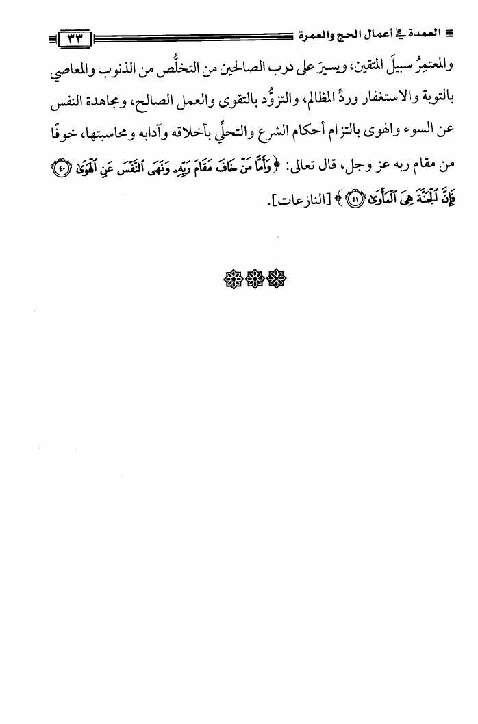 نام کتاب : العمدة فى أعمال الحج والعمرة ومعه نصيحة بين يدي الحاج والمعتمر، فتاوى في الحج والعمرة نویسنده : محمد علي فركوس أبو عبد المعز جلد : 1 صفحه : 33