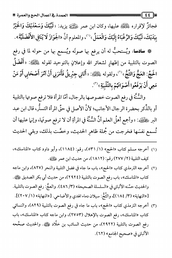 نام کتاب : العمدة فى أعمال الحج والعمرة ومعه نصيحة بين يدي الحاج والمعتمر، فتاوى في الحج والعمرة نویسنده : محمد علي فركوس أبو عبد المعز جلد : 1 صفحه : 44