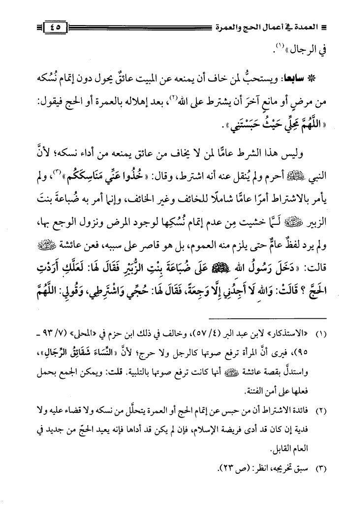 نام کتاب : العمدة فى أعمال الحج والعمرة ومعه نصيحة بين يدي الحاج والمعتمر، فتاوى في الحج والعمرة نویسنده : محمد علي فركوس أبو عبد المعز جلد : 1 صفحه : 45
