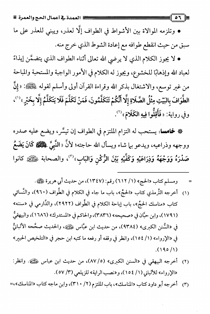 نام کتاب : العمدة فى أعمال الحج والعمرة ومعه نصيحة بين يدي الحاج والمعتمر، فتاوى في الحج والعمرة نویسنده : محمد علي فركوس أبو عبد المعز جلد : 1 صفحه : 56