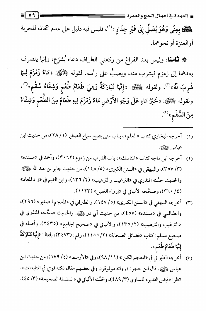 نام کتاب : العمدة فى أعمال الحج والعمرة ومعه نصيحة بين يدي الحاج والمعتمر، فتاوى في الحج والعمرة نویسنده : محمد علي فركوس أبو عبد المعز جلد : 1 صفحه : 59