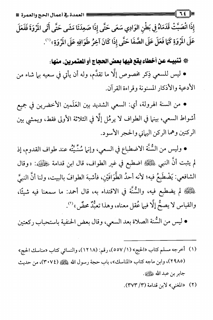 نام کتاب : العمدة فى أعمال الحج والعمرة ومعه نصيحة بين يدي الحاج والمعتمر، فتاوى في الحج والعمرة نویسنده : محمد علي فركوس أبو عبد المعز جلد : 1 صفحه : 64