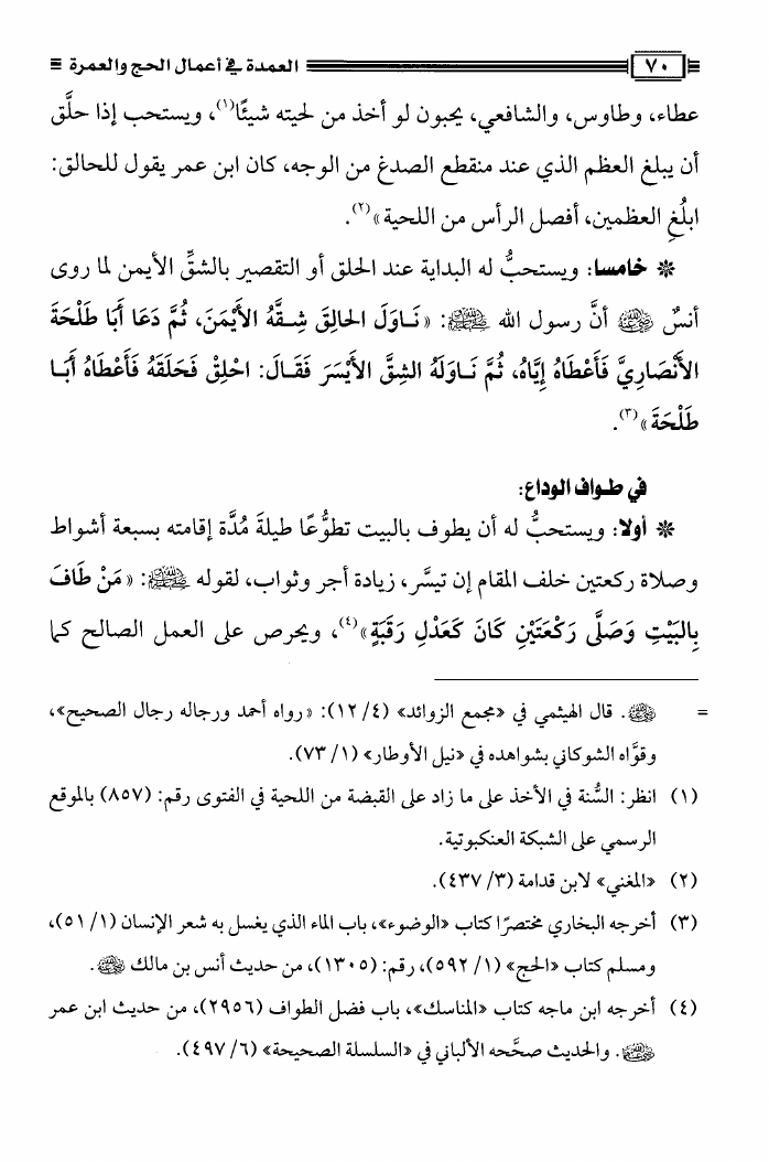 نام کتاب : العمدة فى أعمال الحج والعمرة ومعه نصيحة بين يدي الحاج والمعتمر، فتاوى في الحج والعمرة نویسنده : محمد علي فركوس أبو عبد المعز جلد : 1 صفحه : 70
