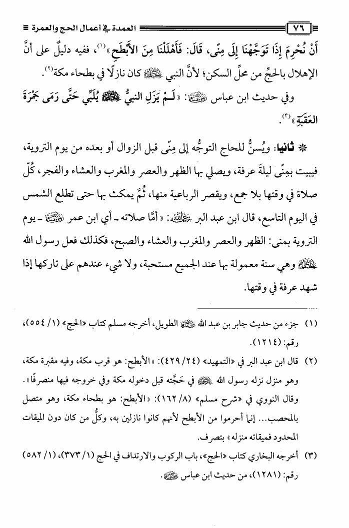 نام کتاب : العمدة فى أعمال الحج والعمرة ومعه نصيحة بين يدي الحاج والمعتمر، فتاوى في الحج والعمرة نویسنده : محمد علي فركوس أبو عبد المعز جلد : 1 صفحه : 76