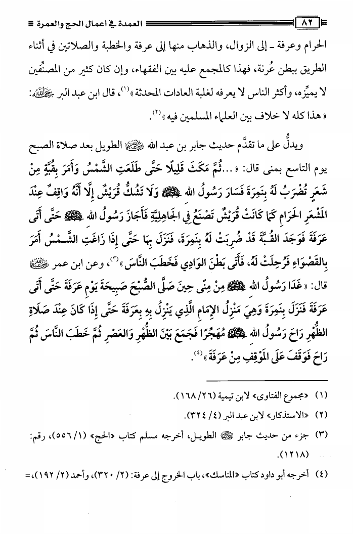 نام کتاب : العمدة فى أعمال الحج والعمرة ومعه نصيحة بين يدي الحاج والمعتمر، فتاوى في الحج والعمرة نویسنده : محمد علي فركوس أبو عبد المعز جلد : 1 صفحه : 82