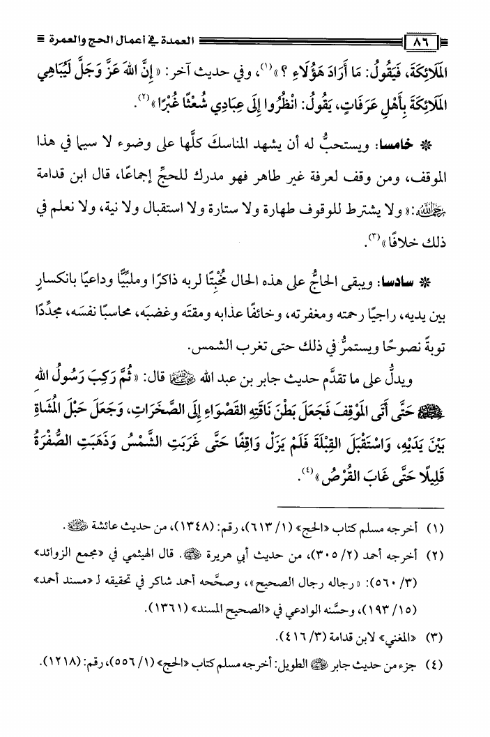 نام کتاب : العمدة فى أعمال الحج والعمرة ومعه نصيحة بين يدي الحاج والمعتمر، فتاوى في الحج والعمرة نویسنده : محمد علي فركوس أبو عبد المعز جلد : 1 صفحه : 86