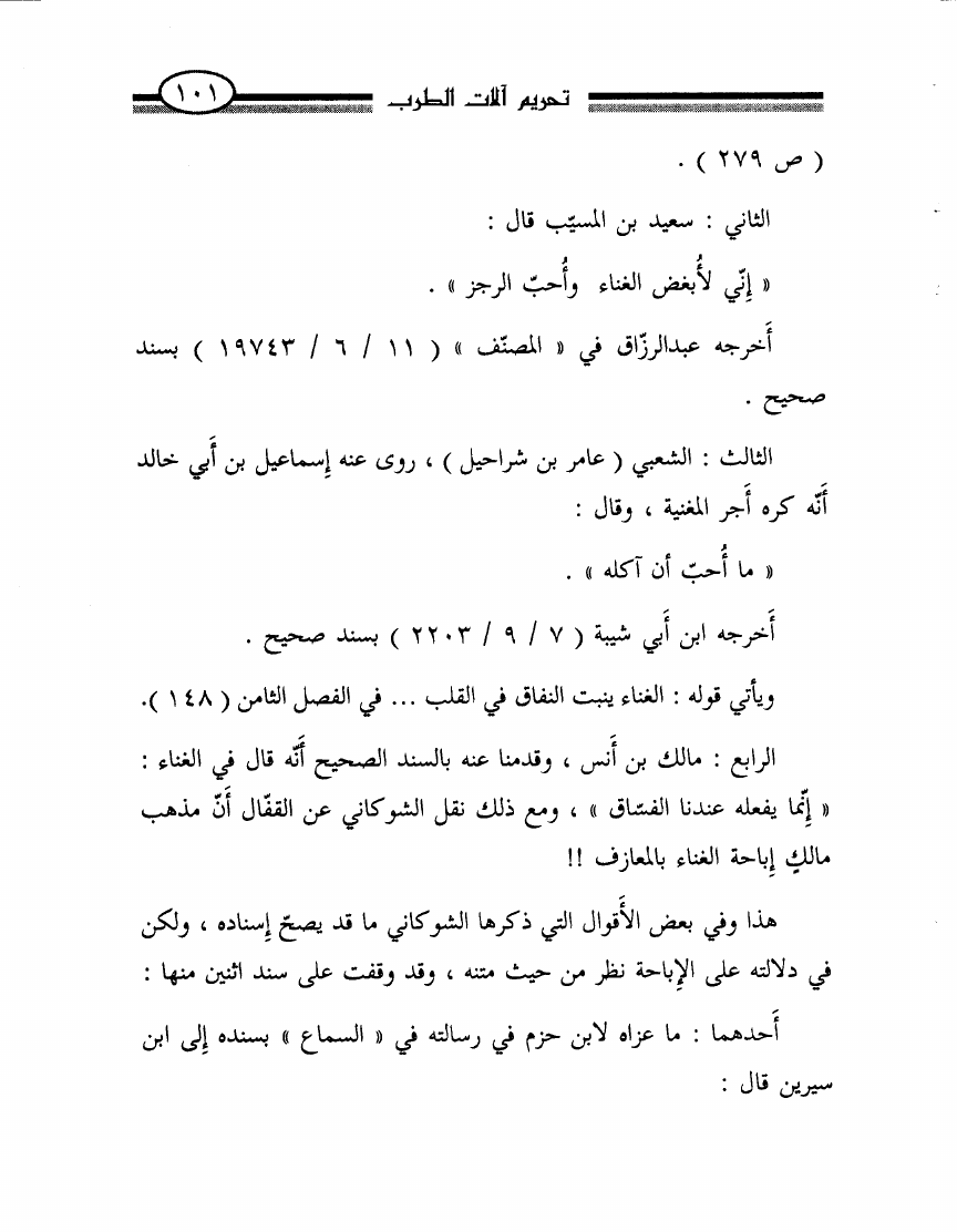 نام کتاب : تحريم آلات الطرب أو الرد بالوحيين وأقوال أئمتنا على ابن حزم ومقلديه المبيحين للمعازف والغنا وعلى الصوفيين الذين اتخذوه قربة ودينا نویسنده : محمد ناصر الدين الألباني جلد : 1 صفحه : 101