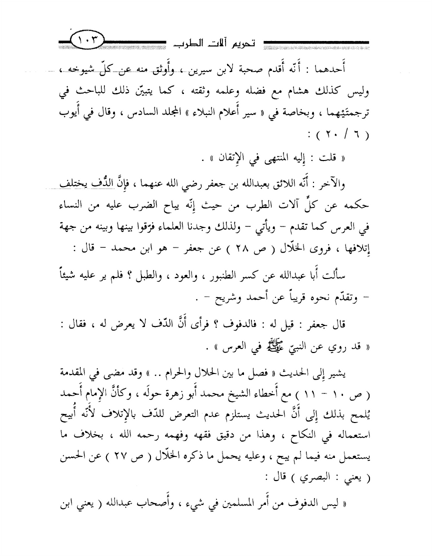نام کتاب : تحريم آلات الطرب أو الرد بالوحيين وأقوال أئمتنا على ابن حزم ومقلديه المبيحين للمعازف والغنا وعلى الصوفيين الذين اتخذوه قربة ودينا نویسنده : محمد ناصر الدين الألباني جلد : 1 صفحه : 103