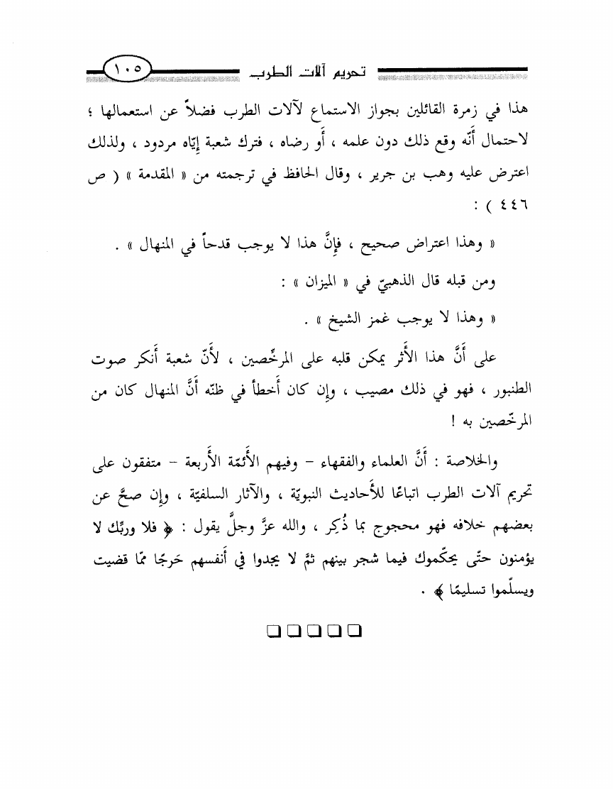 نام کتاب : تحريم آلات الطرب أو الرد بالوحيين وأقوال أئمتنا على ابن حزم ومقلديه المبيحين للمعازف والغنا وعلى الصوفيين الذين اتخذوه قربة ودينا نویسنده : محمد ناصر الدين الألباني جلد : 1 صفحه : 105